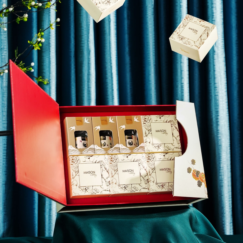 Hộp bánh trung thu "Hồng Thanh" của Maison Luxury không chỉ là một món quà đẹp mắt mà còn chứa đựng tình cảm và sự trân trọng, mang đến niềm vui và hạnh phúc cho người nhận trong mùa Trung Thu. Maison Luxury tự hào mang đến sản phẩm chất lượng, xứng đáng với niềm tin và sự yêu mến của quý khách hàng.